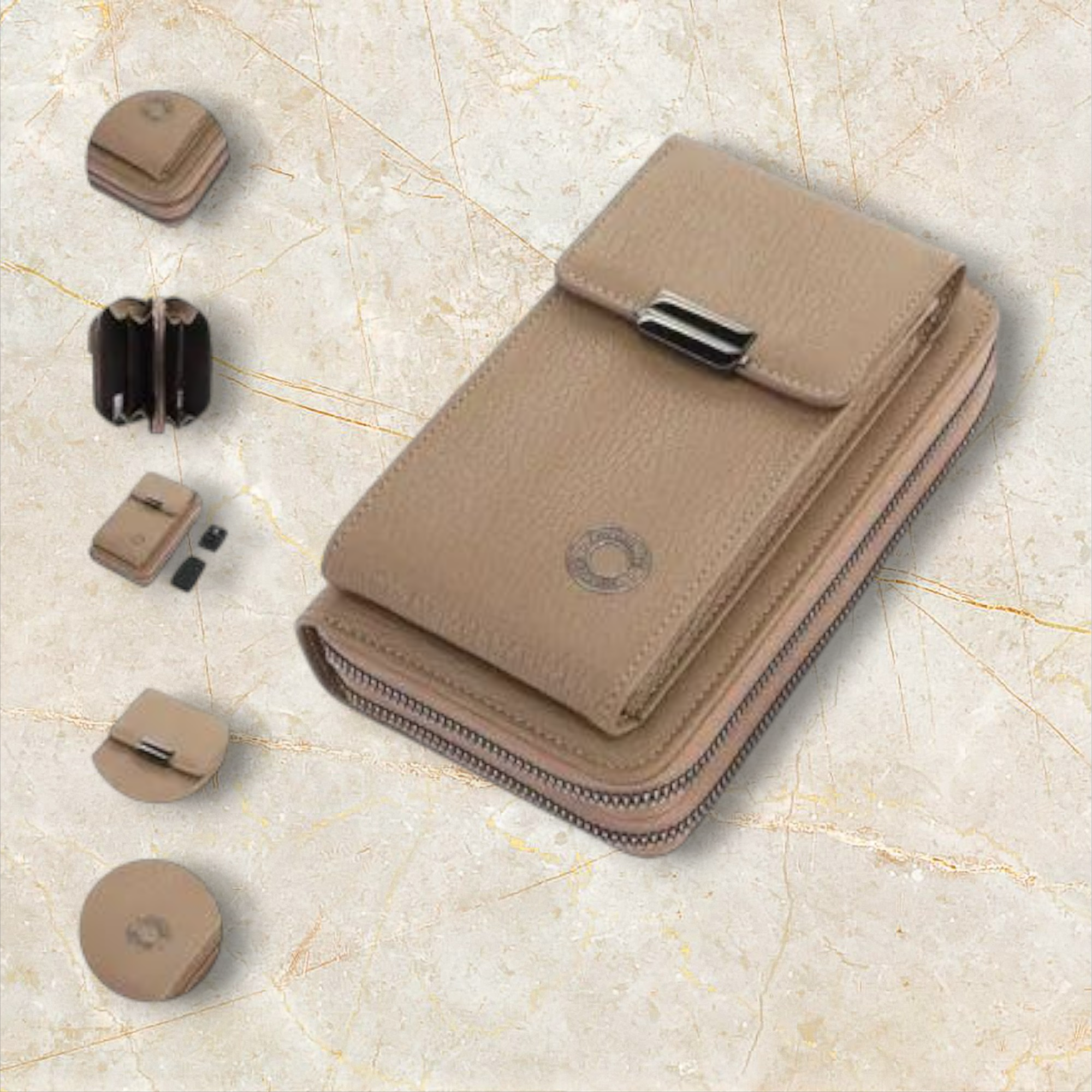 Material PU.Resistente y de facil mantenimiento.Compartimientos con cierre ideal para organizar billetes y pertenencias.Division interna para tarjetas.